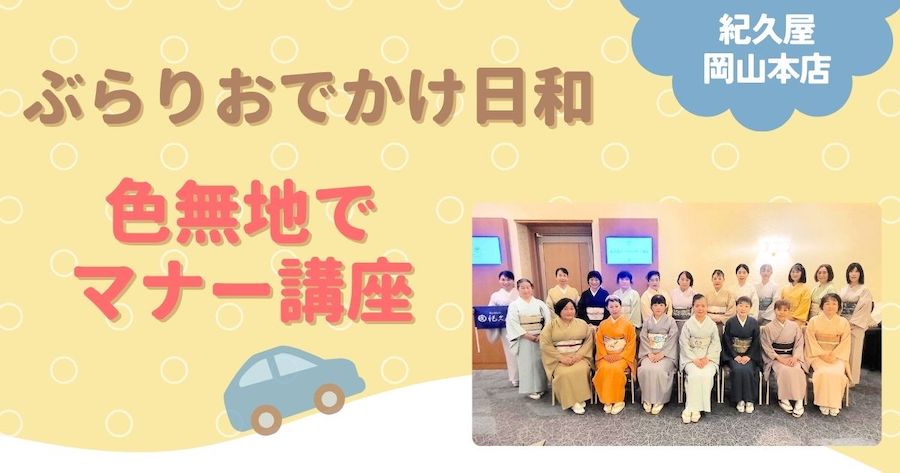 背筋がちょっと伸びるような、着物でのお出かけ。今回の岡山店のぶらりおでかけ日和は、ホテルグランヴィア岡山での和食マナー講座を開催しました!そして、今回のドレスコードは色無地。この日は初参加の方も含めて、たくさんの方にご参加いただきました。美味しいお料理をいただきながら、普段はなかなか学ぶ機会のな...